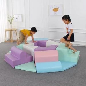 Bộ vận động mềm cho bé trải nghiệm những hoạt động tăng cường vận động ở mức độ an toàn, nhẹ nhàng. Trò chơi vận động này phù hợp với nhiều trẻ, nhiều độ tuổi khác nhau.